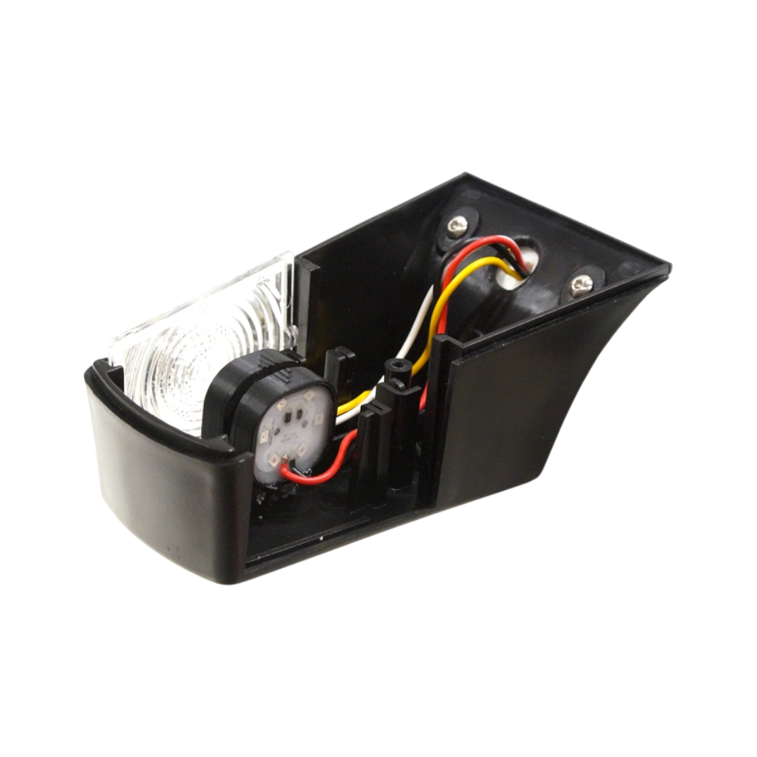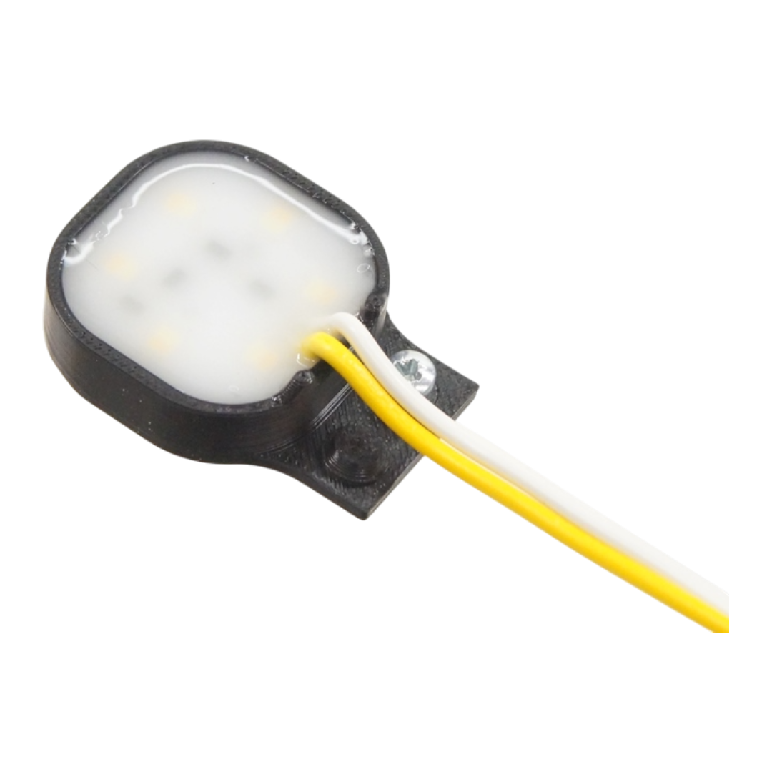 Det betyder, at lampen kan tilpasses både for- og bagmontering og bruges i flere roller på køretøjet, uden at selve lygtehuset skal udskiftes. Der skal anvendes to LED-lyskilder pr. lampe for at opnå korrekt og ensartet lysfordeling. Monteringen foretages ved at bore to huller i lampen, hvorefter lyskilderne fastgøres med de medfølgende skruer. Ledningerne er 1 meter lange og føres nemt ud af lampen, hvilket gør installationen overskuelig og fleksibel.